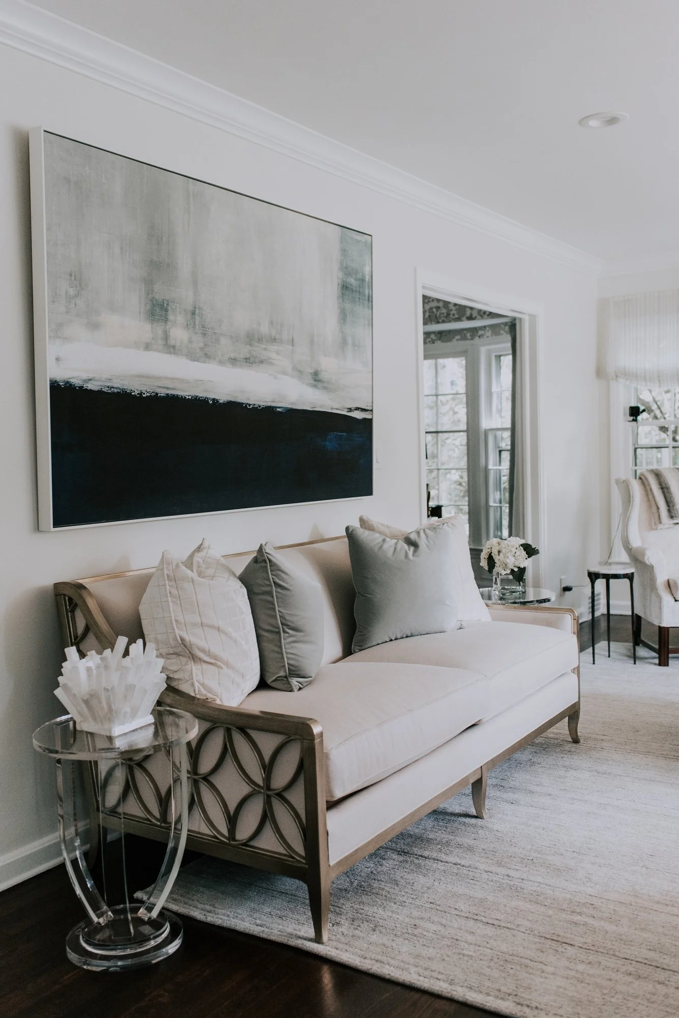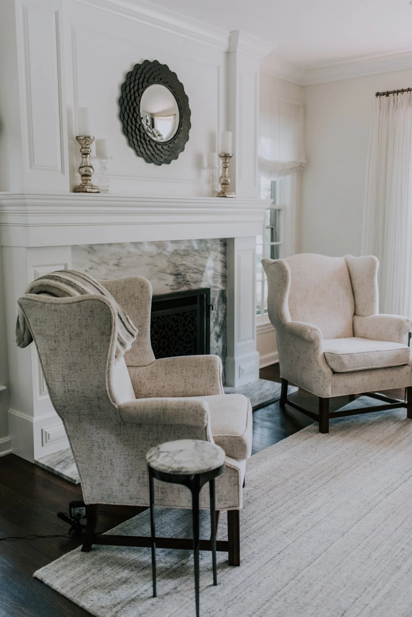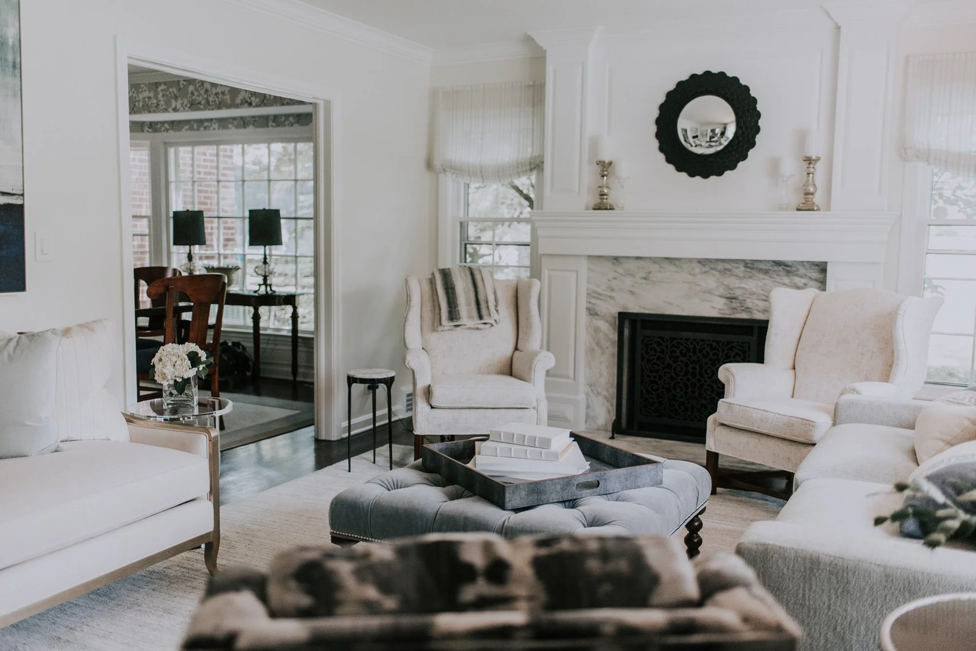 Having grown up in the south, the owner wanted to infuse a little tradition into the design. Walls were moved, fireplaces reconstructed and architectural millwork installed. A vintage vent that once lived in a Cleveland mansion on Millionaires' Row was reimagined as a fireplace screen. The transformation took place over the course of a few years. Each room is multi-purpose, and continuity was achieved through color and tone.