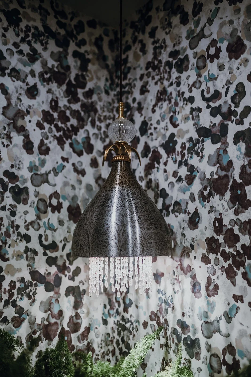 Downstairs holds a primary bedroom, which Linda approached with the same frame of mind. The room was updated with classic embellishments and warm, subtle hues through marble table lamps, an opulent chandelier and patterned window treatments.