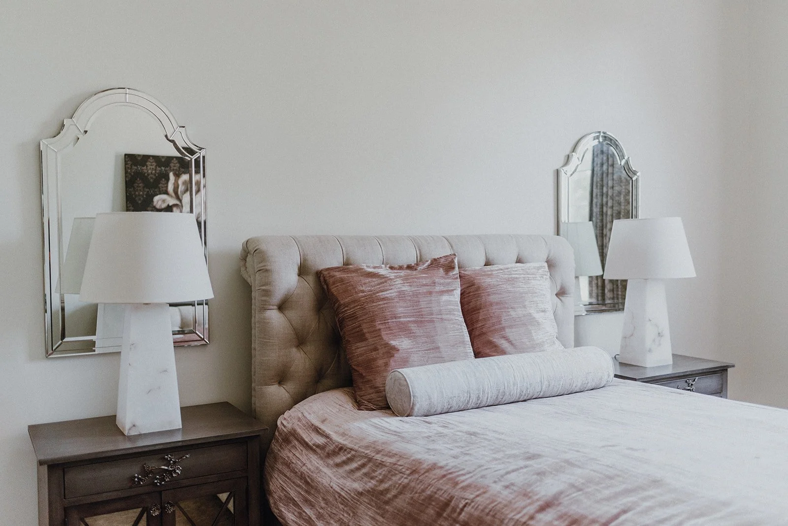 a townhome’s bedroom suites are reimagined. the client longed for a luxe guest suite to welcome home her college-aged daughter, and sought out designer linda to help bring the vision to life.