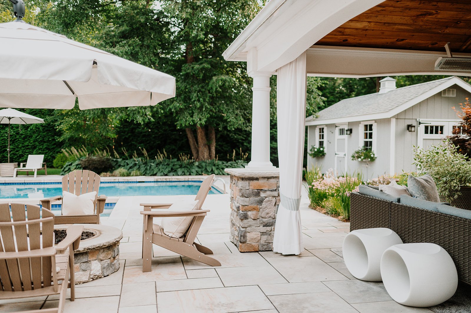 after completing the interiors of the shelburne residence, the homeowners enlisted dawn to outfit their outdoor space with the furniture and accessories it needed to become a sublime space for entertaining.
