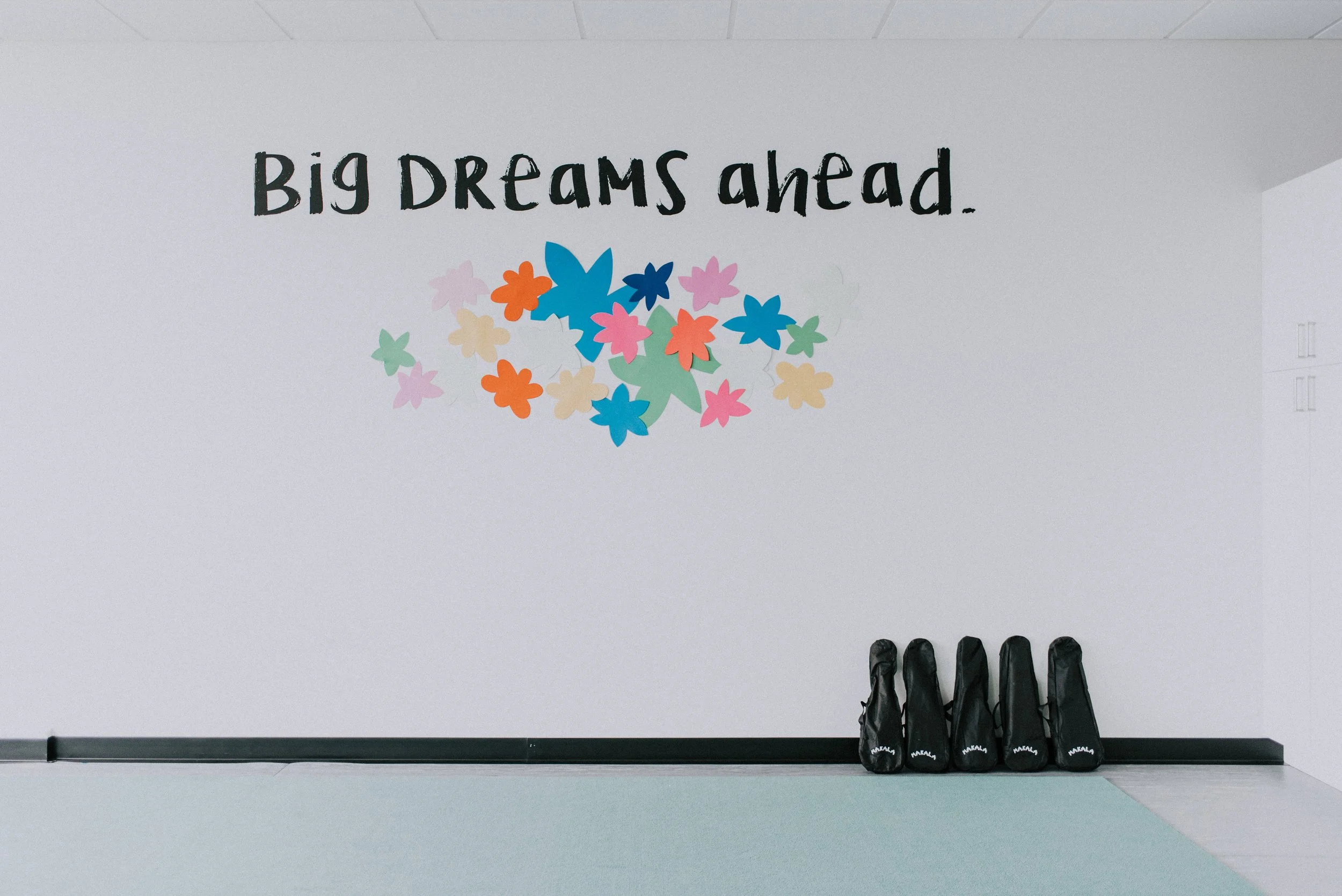Once the space was secured, Linda brought on fellow designer Dawn and they quickly began planning. Thoughtful considerations were given to how this commercial space would be transformed into a welcoming, fresh and fun playground for the arts. Sound was extremely important—furnishings needed to be comfortable, color and messaging needed to be inspiring. The space was designed to expand as the need for creative eduction continues.